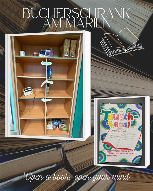 Unser bisher leerer Schrank hat jetzt eine neue Mission: Er wird zum Bücherschrank für alle Klassen! Organisiert von eurer SV, entsteht hier ein Ort zum Tauschen, Entdecken und Weitergeben von Geschichten.