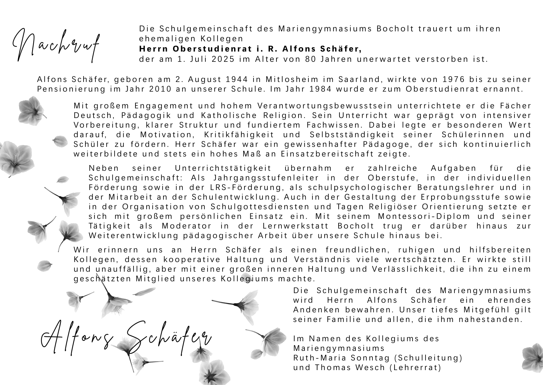 Nachruf Alfons Schäfer